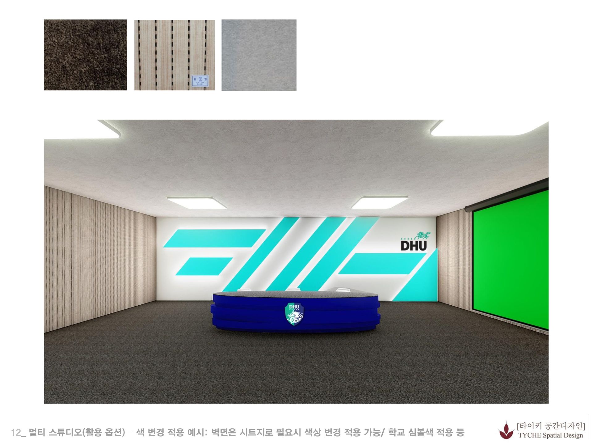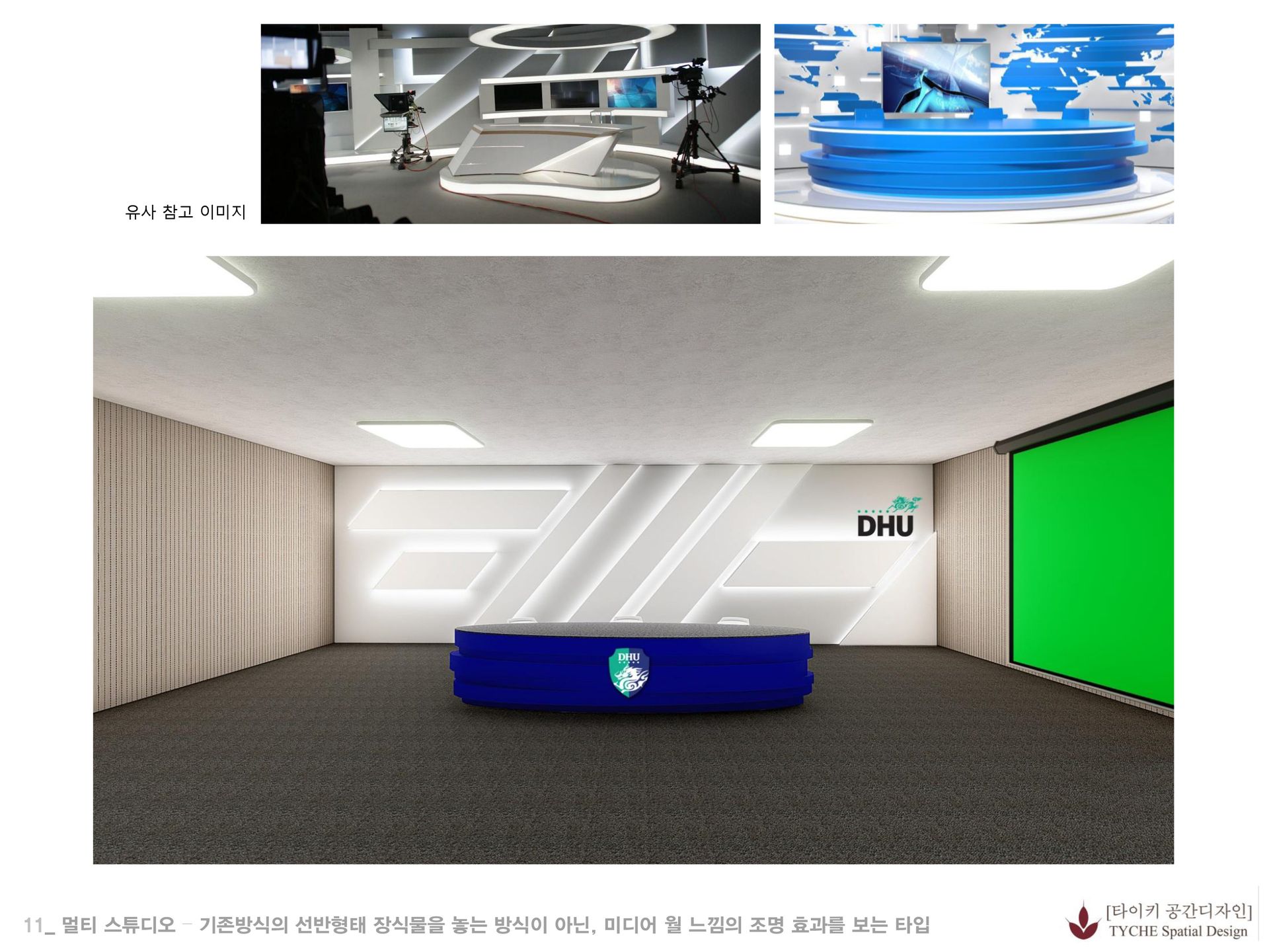 A multimedia studio design project inside the Academic Information Center at Daegu Haany University. We planned soundproofing, lighting, and equipment layout in an integrated way to create a professional studio environment for student content creation and media learning.