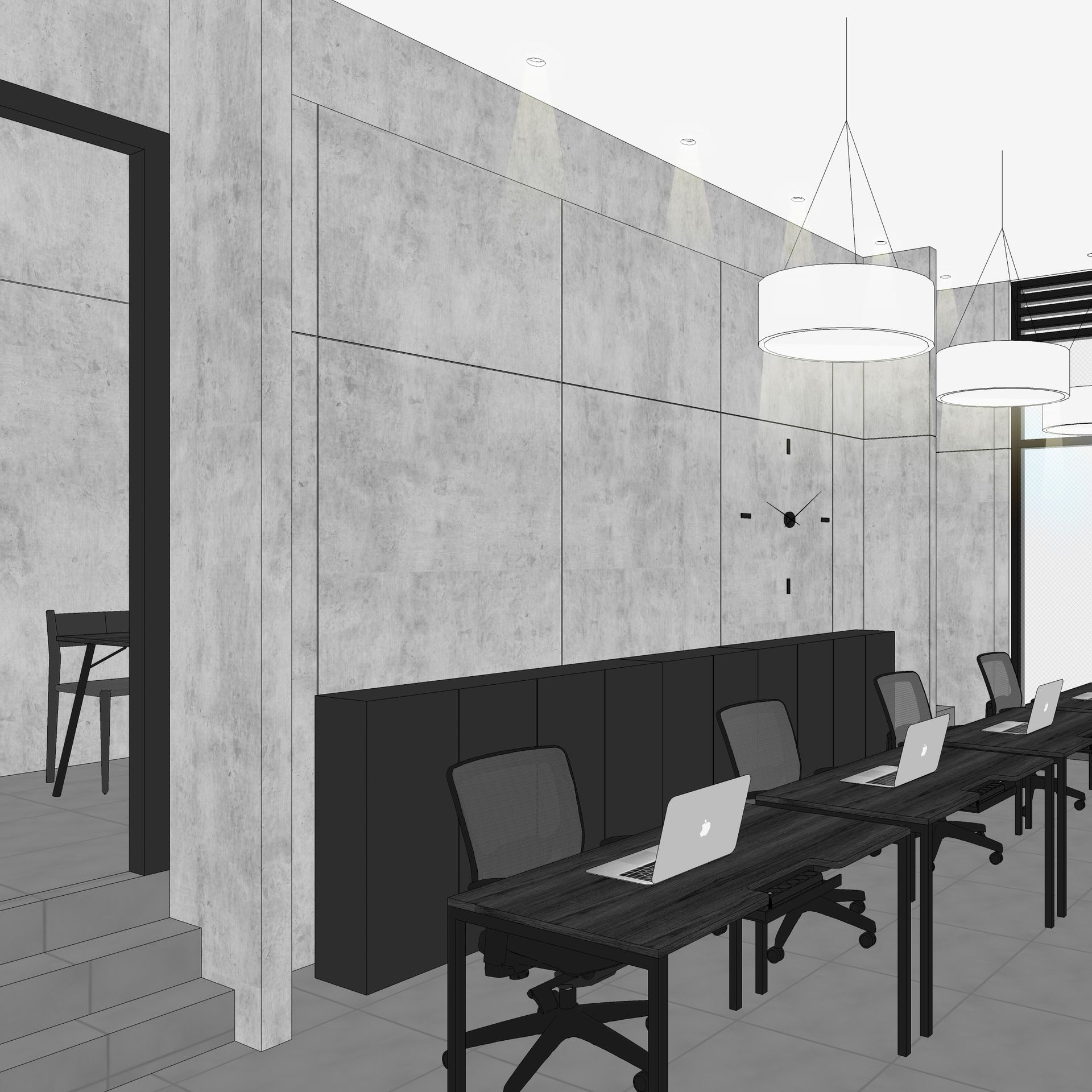 Design for a real estate office within the Eliway Gwanggyo complex. The space conveys trust and brand identity to visiting clients, expressing professionalism through a simple, refined layout and material selection.