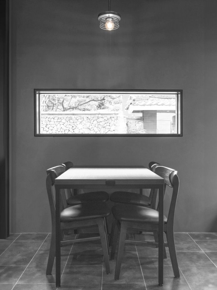 한식의 품격을 현대적 공간으로 풀어낸 레스토랑. 전통과 절제의 균형을 핵심 언어로 삼아, 돌과 목재, 어두운 철재가 만들어내는 대비가 음식에 집중할 수 있는 차분한 분위기를 만들어냅니다.